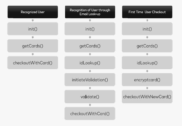 The following API methods must be invoked during the checkout process. Refer to the Mastercard SDK documentation for full payload details and flow handling: